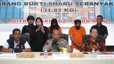 TNI AL dan Polda Riau Gagalkan Penyelundupan 31,8 Kg Sabu di Pelabuhan Roro Dumai Dumai,…